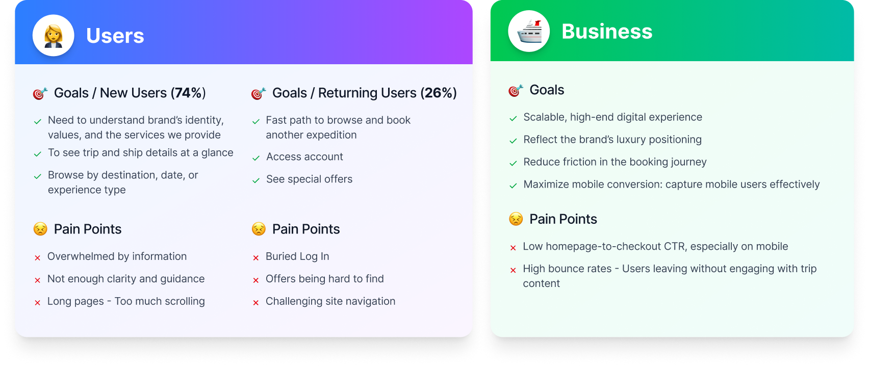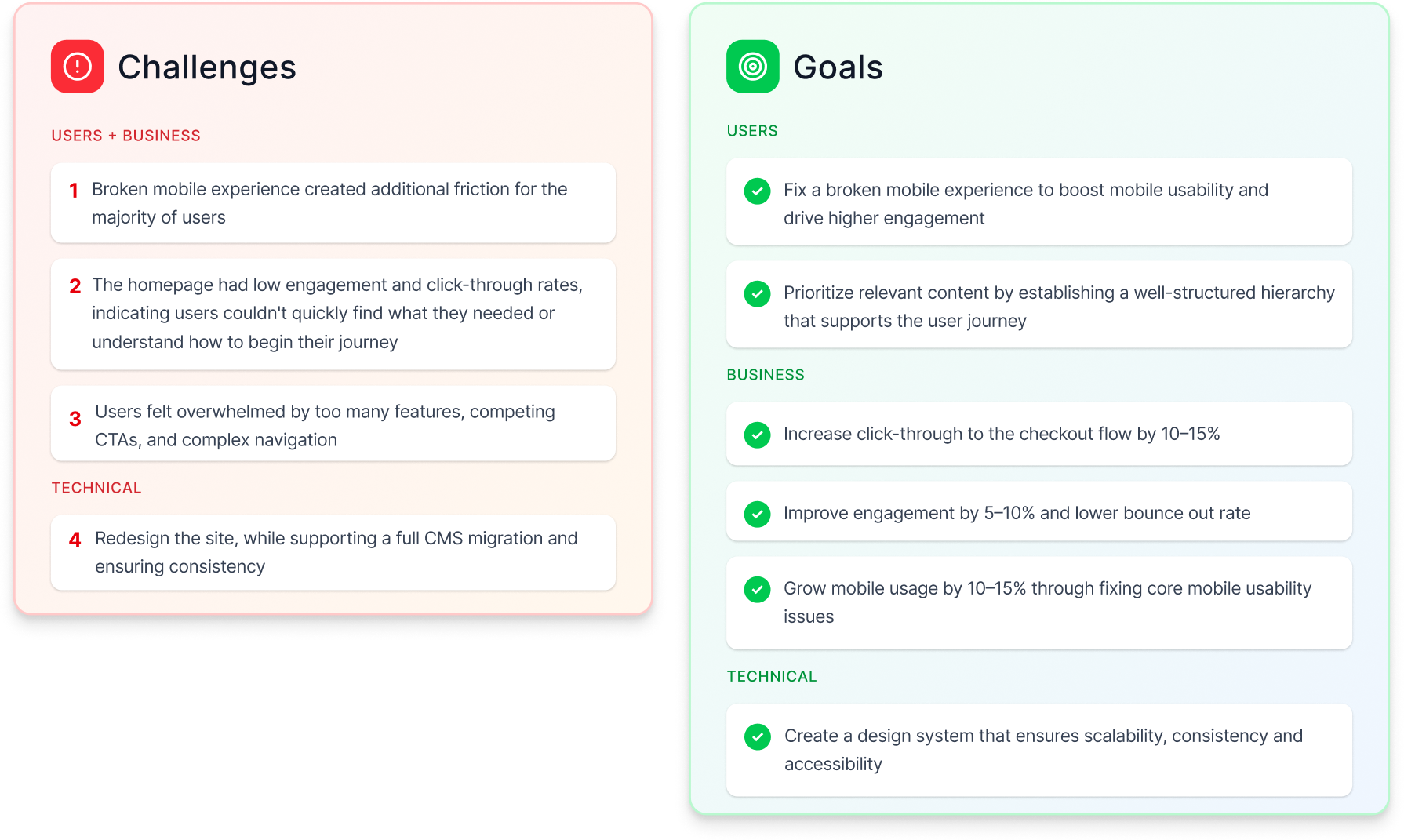 Redesign the site, fix the broken mobile experience, while supporting a full CMS migration and ensuring improvements in engagement and conversion.